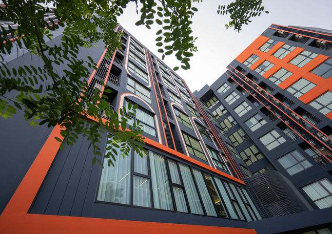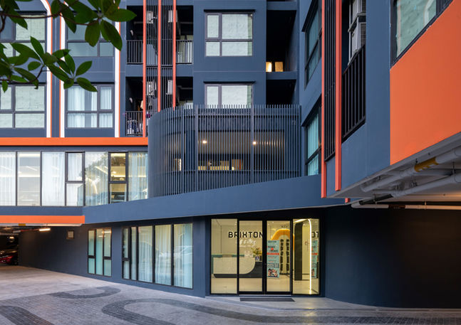 Brixton Pet&Play Phahol 50 Station is a contemporary low-rise condominium development that reinterprets urban dwelling through the lens of pet-inclusive design. Anchored in the concept of “Pet-Friendly Urban Living,” the architectural approach merges spatial efficiency with experiential quality. The massing is articulated through clean geometric volumes, softened by vibrant chromatic accents that activate the façade and enliven the overall urban presence. This interplay of form and color fosters a sense of vibrancy, aligning visual identity with the playful nature of its programming.